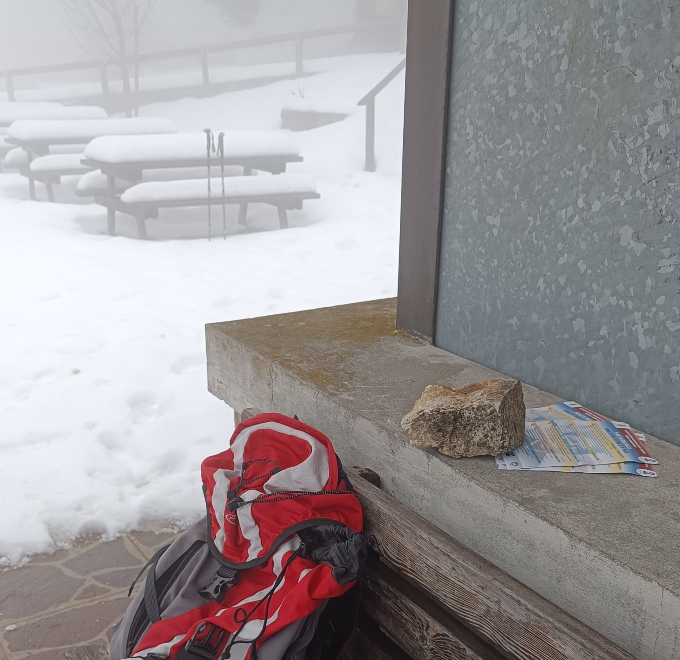 Anche quest’anno, nonostante l’abbondante nevicata, la locandina che pubblicizza il febbraio mese di Bakhita viene portata alla chiesetta di Santa Maria del Summano.