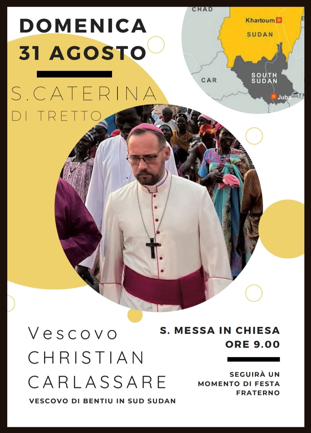 Su iniziativa dell’Unità Pastorale Santa Bakhita di Schio incontro con il Vescovo Christian Carlassare a Santa Caterina di Tretto. Con il Vescovo si gettano le basi per futuri progetti di collaborazione in Sud Sudan (Il Vescovo è titolare della Diocesi di Bentiu)