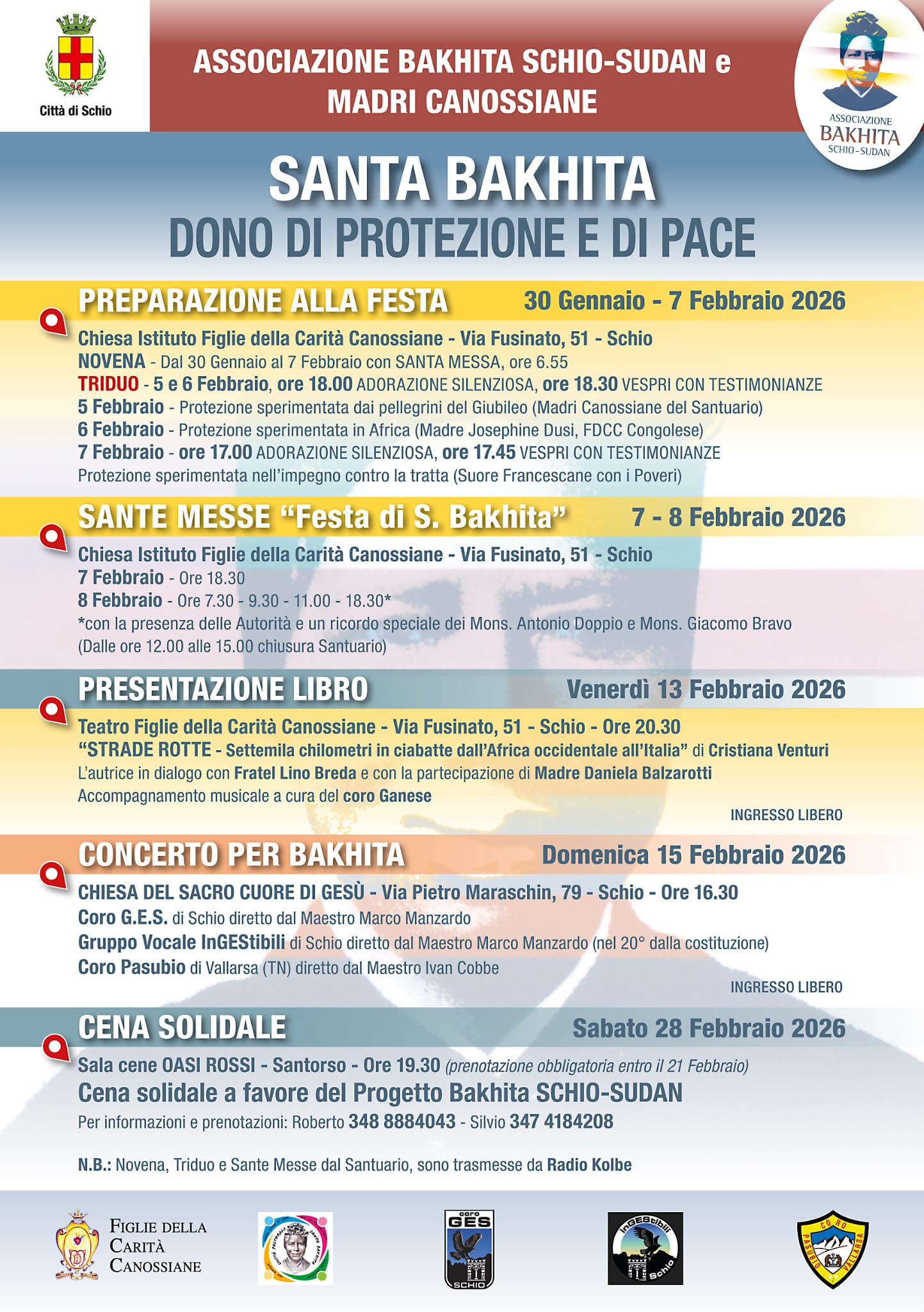 Il 25 Ottobre 2025 l’Associazione Bakhita Schio Sudan ha collaborato in modo fattivo alla realizzazione dell’iniziativa: “Bakhita 25 anni di Santità” promossa dalla Fondazione Canossiana Voica e dalle Madri Canossiane di Schio.